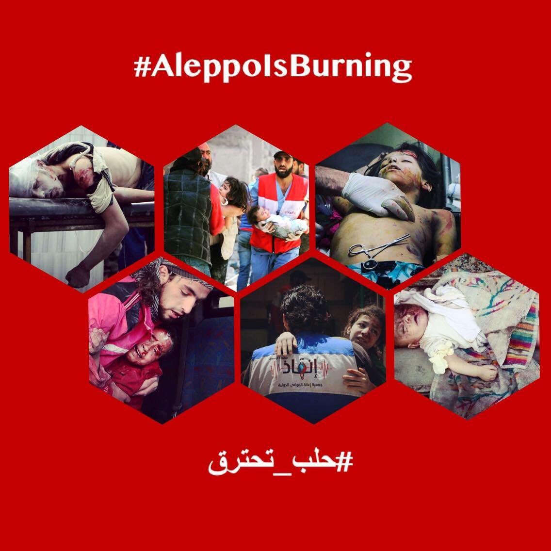 simpati terhadap insiden di Aleppo. Mereka juga mengangkat tagar #حلب_تحترق/#aleppoisburning yang artinya Aleppo